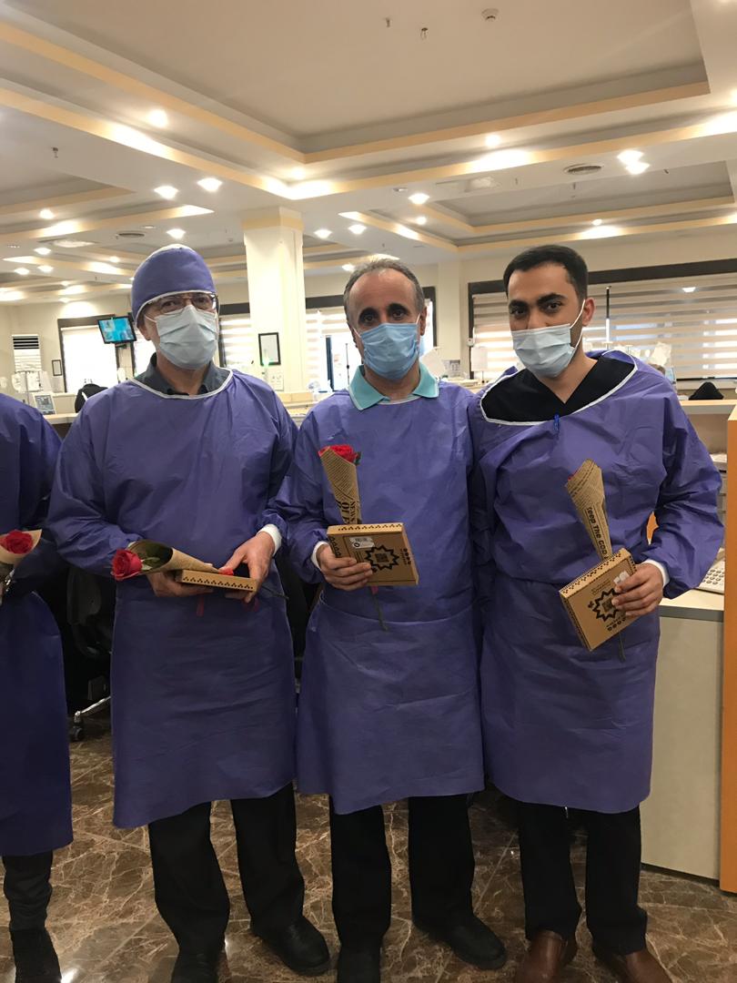 اهدای گل و لوح تقدیر از طرف امام جمعه شهرک واوان به پرستاران مرکز درمانی