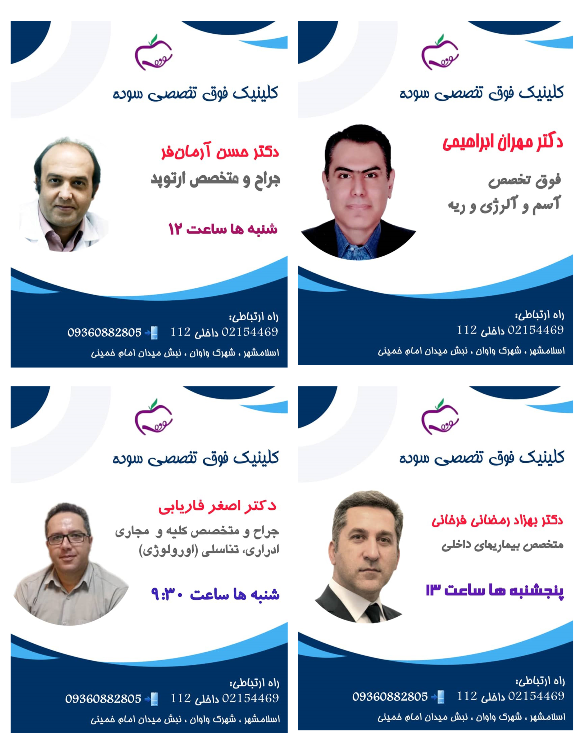 پزشکان جدید درمانگاه مرکز درمانی تخصصی خیریه سوده