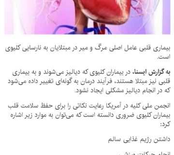 در افرادی که دیالیز می شوند مقدار بعضی از مواد در خون تغییر میکند که دراین صورت لازم است در مصرف مواد غذایی دقت شود. به منظور پیشگیری از ایجاد مشکلات تغذیه ... ادامه مطلب